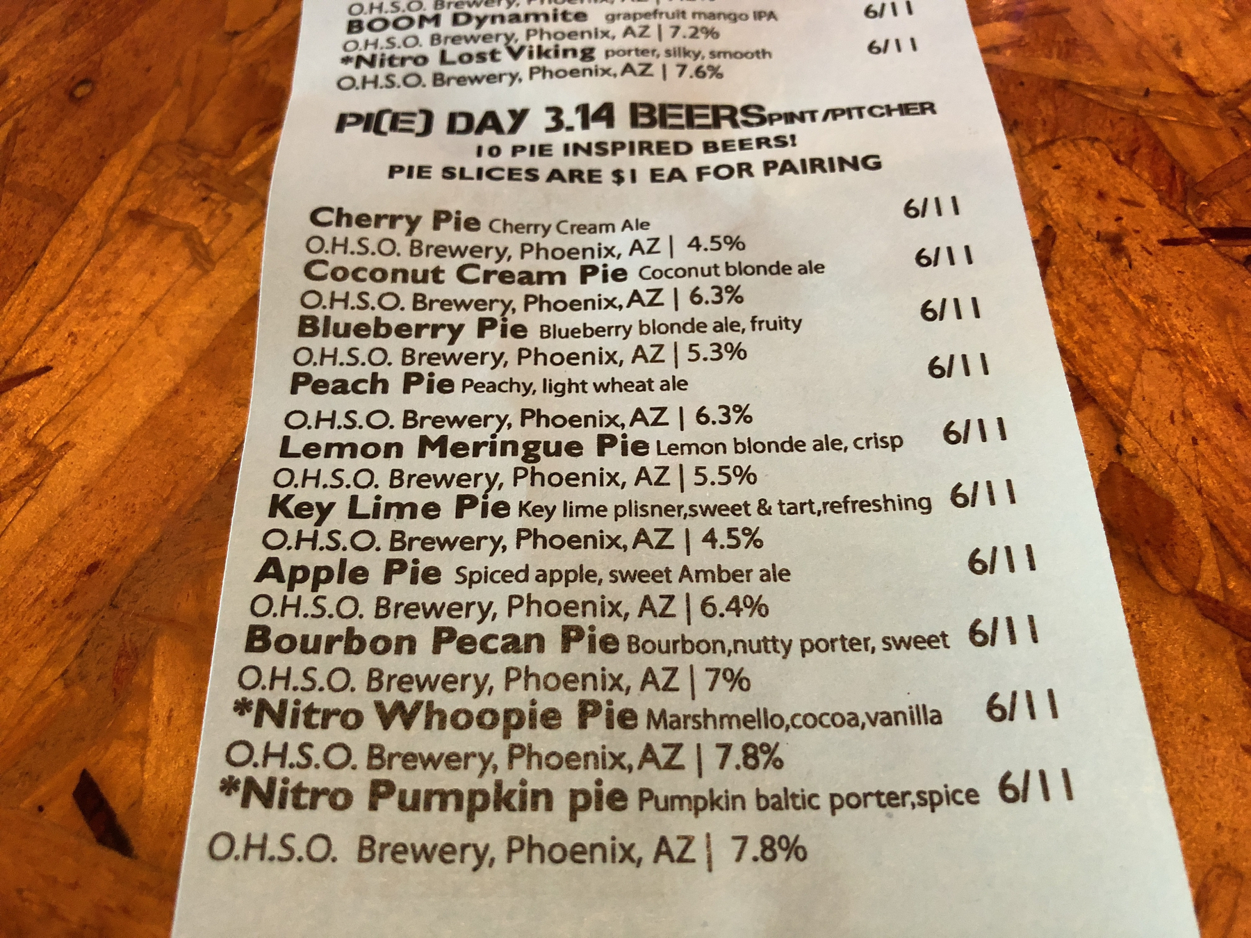 One my favorite π days was OTD in 2018 when my dad joined Jen and I at OHSO Brewing. They had brewed a special menu of pi(e)-inspired beers, paired with slices of various pies. My dad isn’t a fan of craft beer, so he mostly ate pie and told stories. What a fun afternoon!