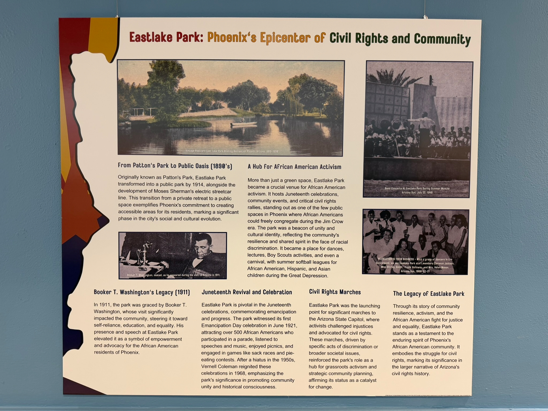 I learned quite a bit here, especially about the local struggle against segregation (including a successful challenge to the system a year before Brown v Board), the centrality of Eastlake Park to the movement, and about a now largely defunct neighborhood known as the Harlem of Phoenix, among other random factoids and episodes.
