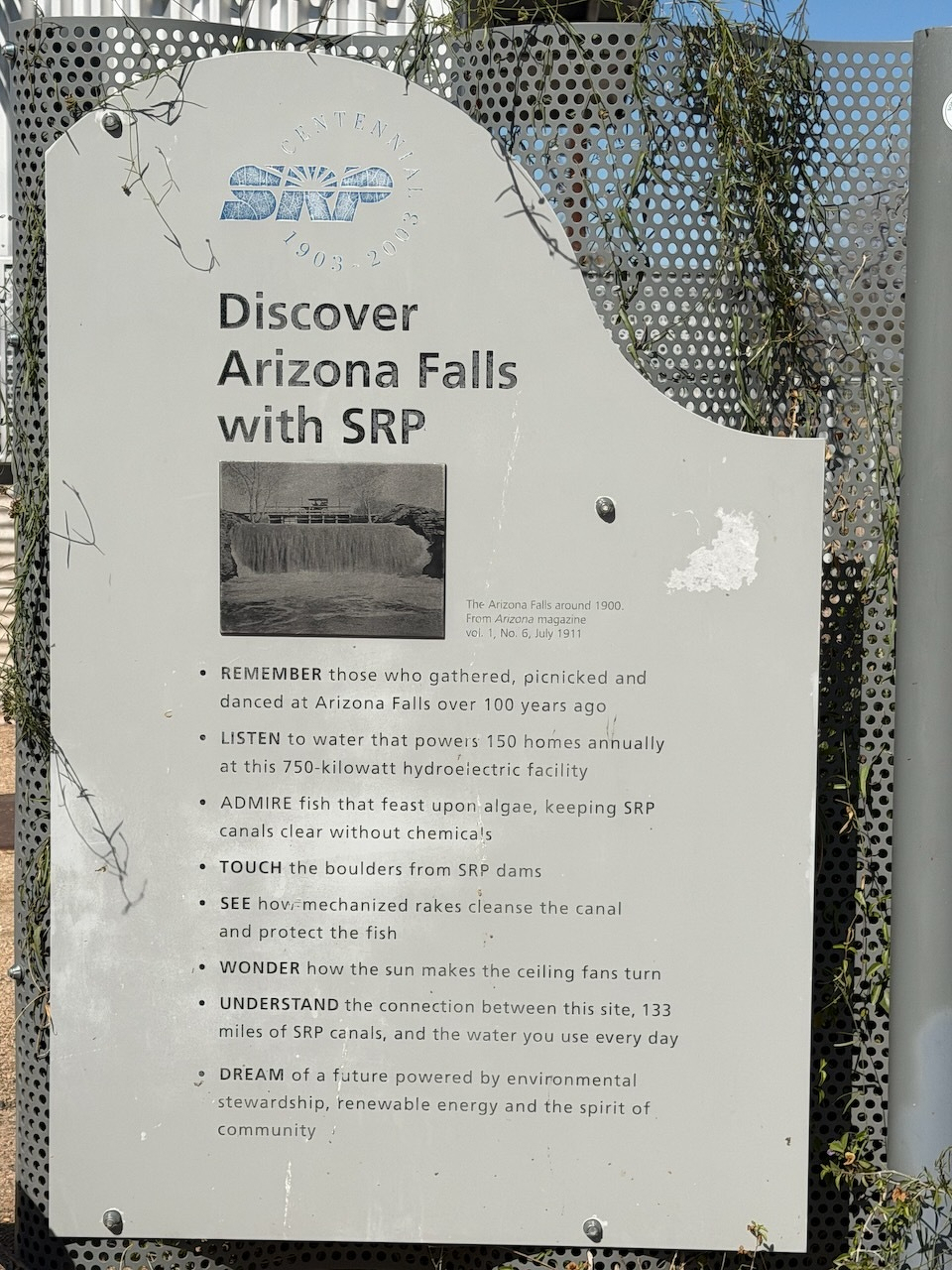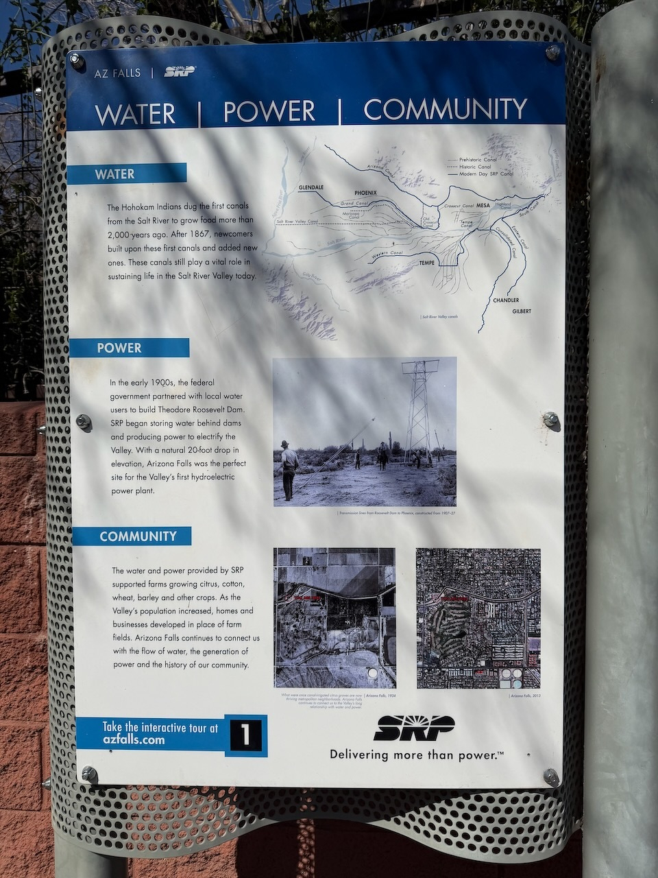 I finally brought Jen over to Arizona Falls today. Situated at a natural 20-foot drop along the Arizona Canal, the site is home to Phoenix first hydroelectric power station, built back in 1902. Today it powers ~150 homes in the area while serving as a neighborhood attraction and recreation spot.