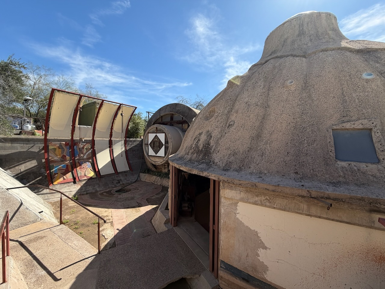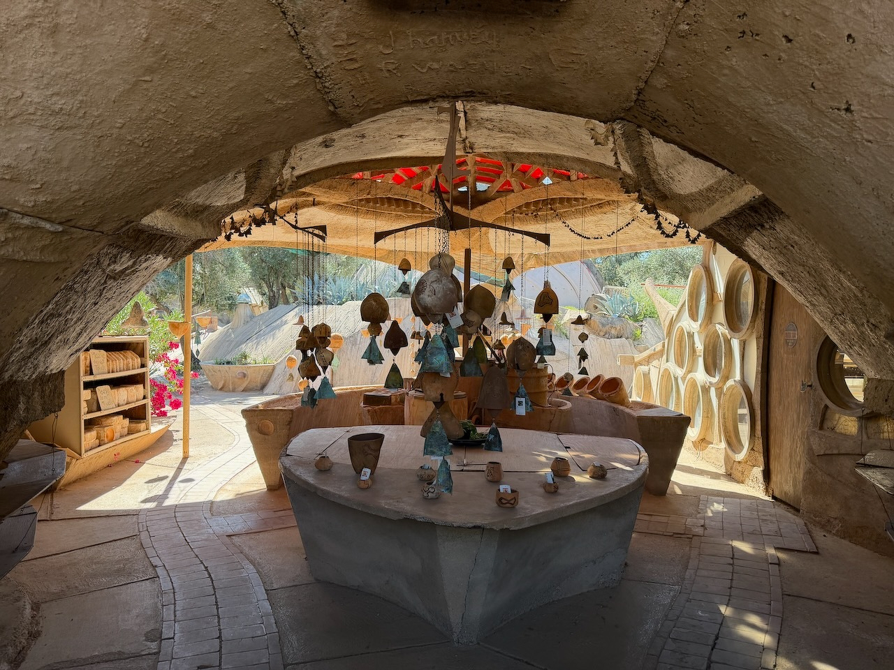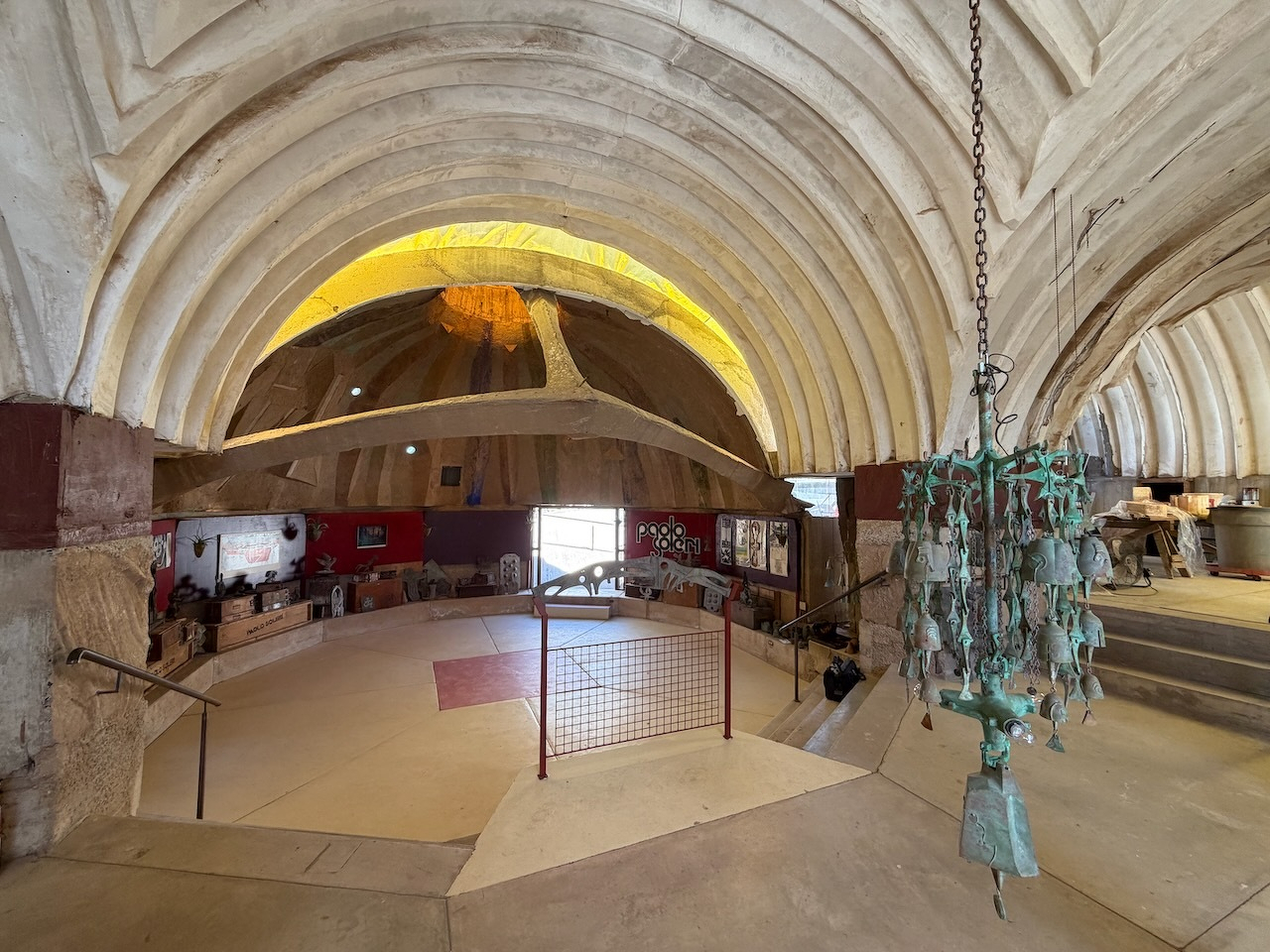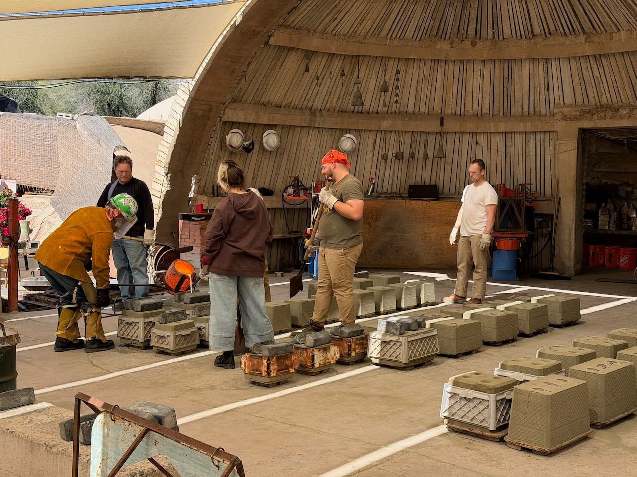 I watched artisans pour molten bronze to make some of those famous Cosanti bells today, while we toured Paulo Solari’s…uhhh…experimental “sustainable urban design” studio/foundry (a companion to his “arcology” installation, Arcosanti) for our Phoenix Culture Pass quest.