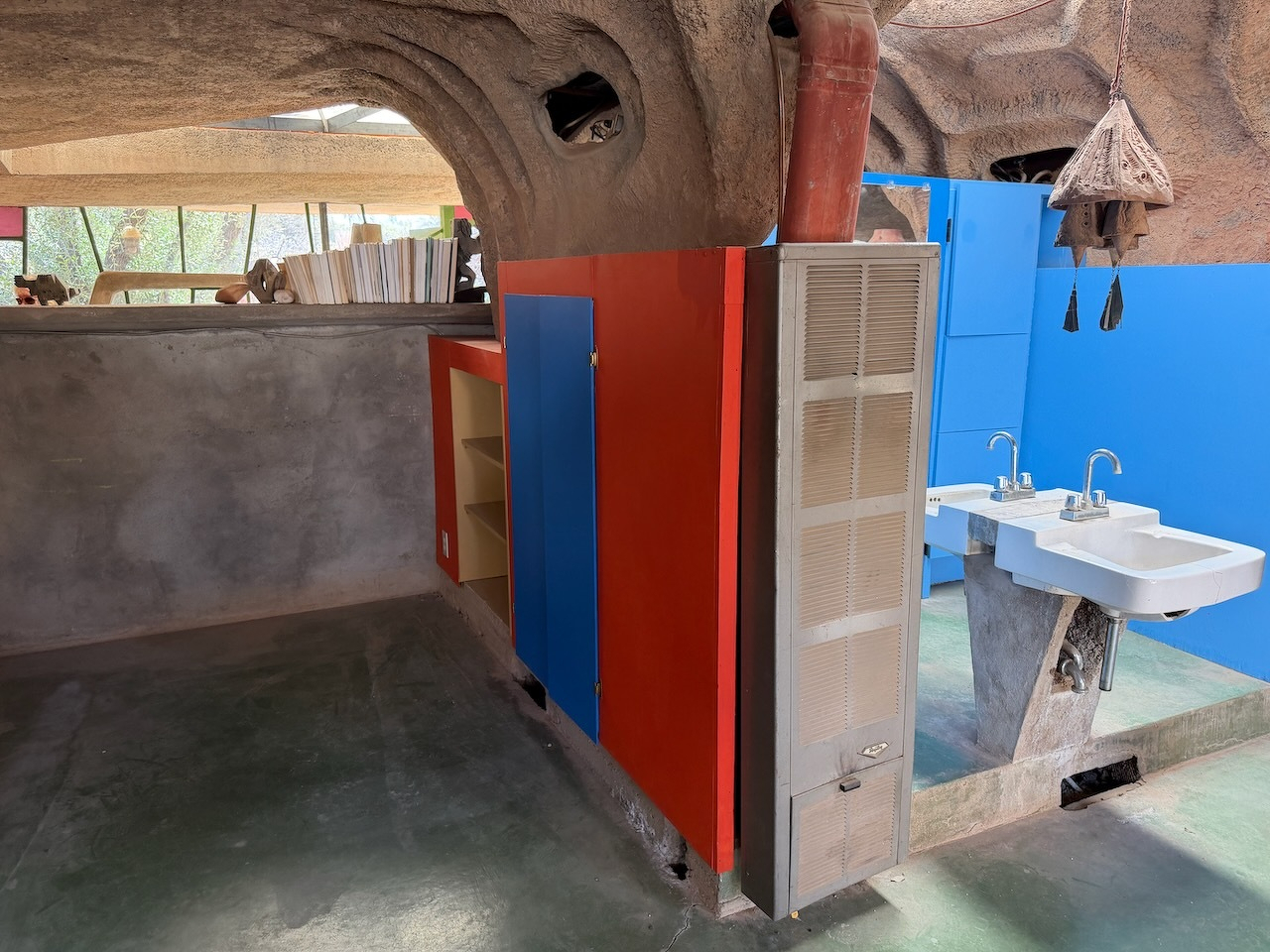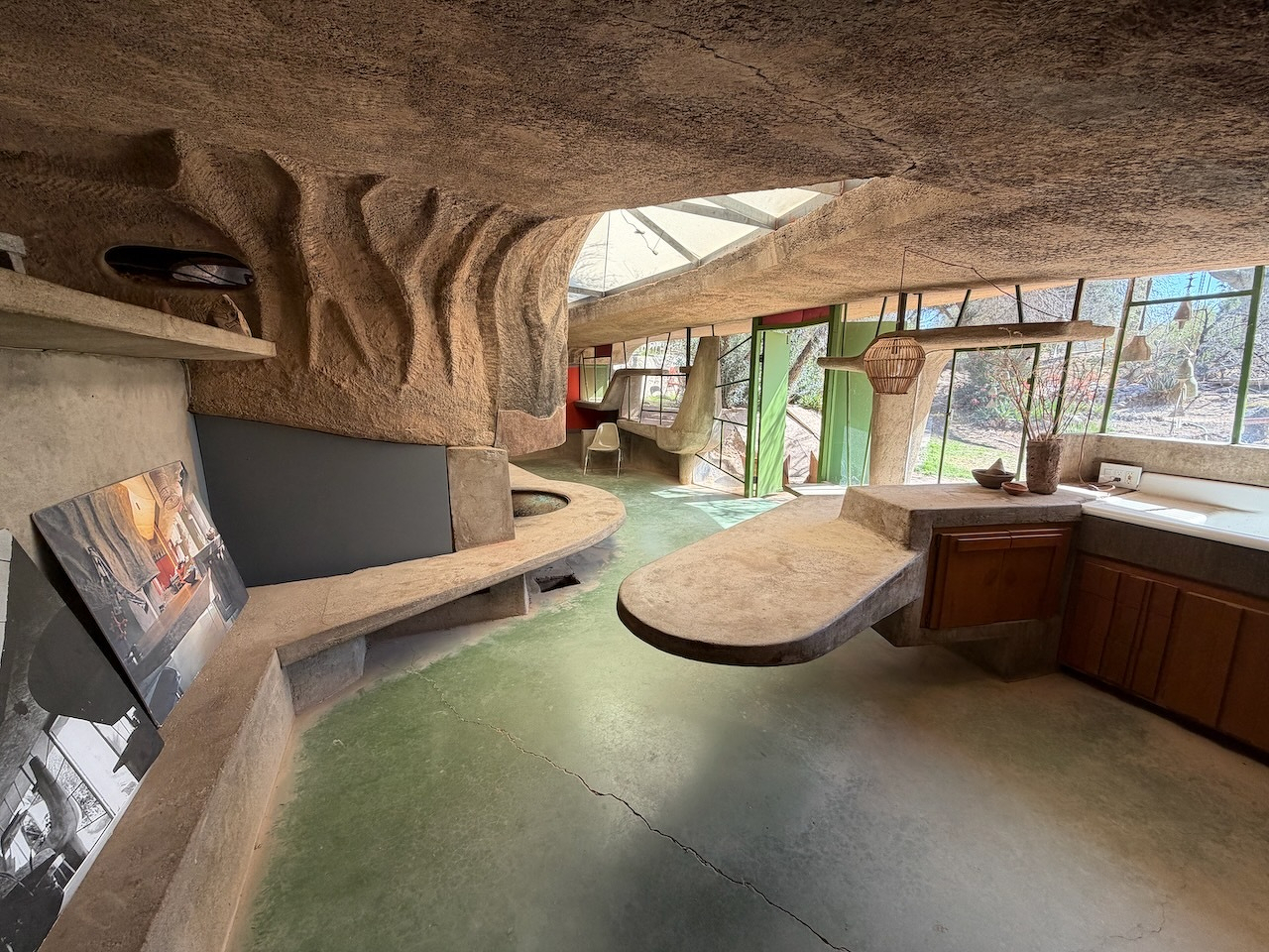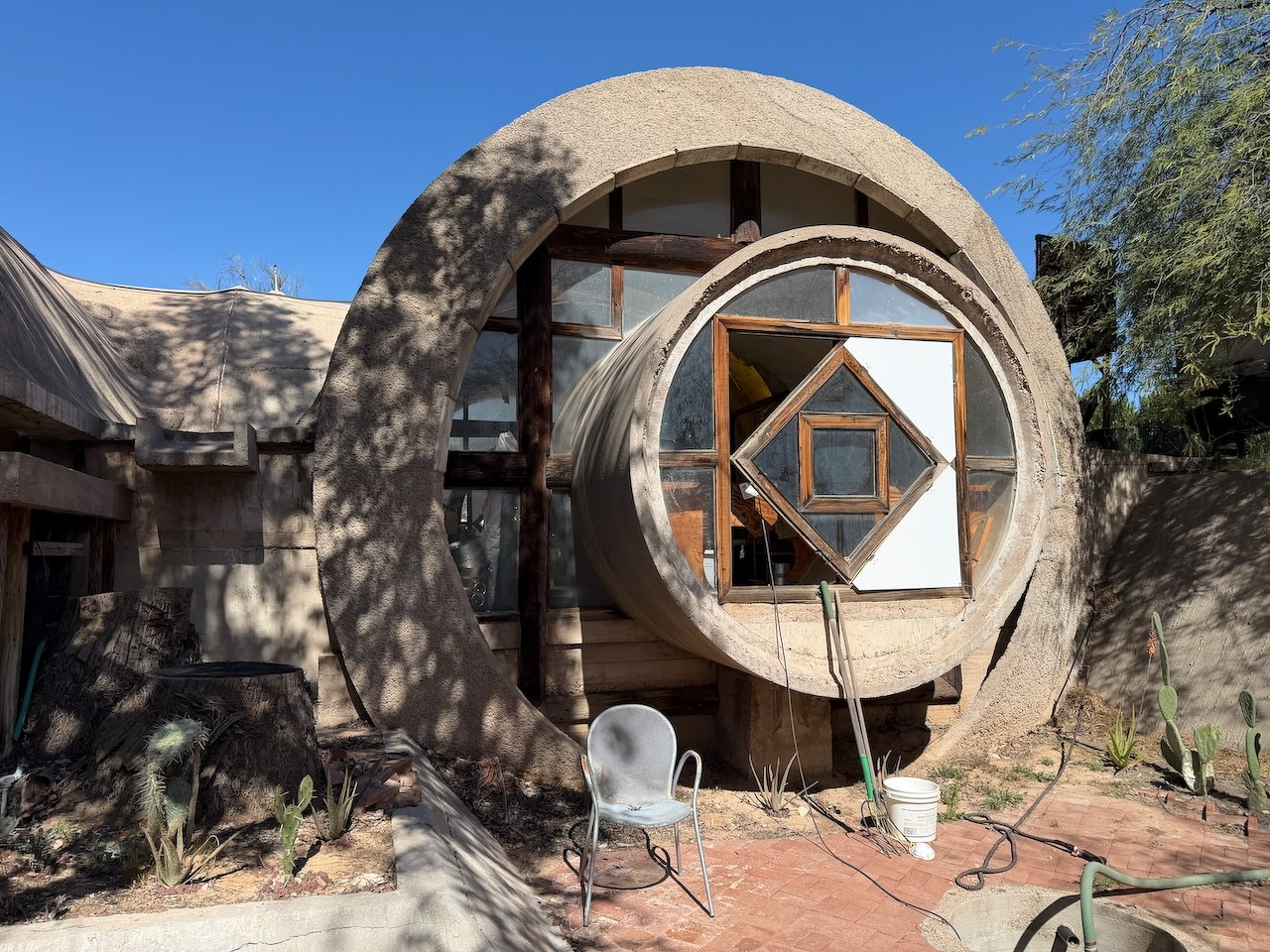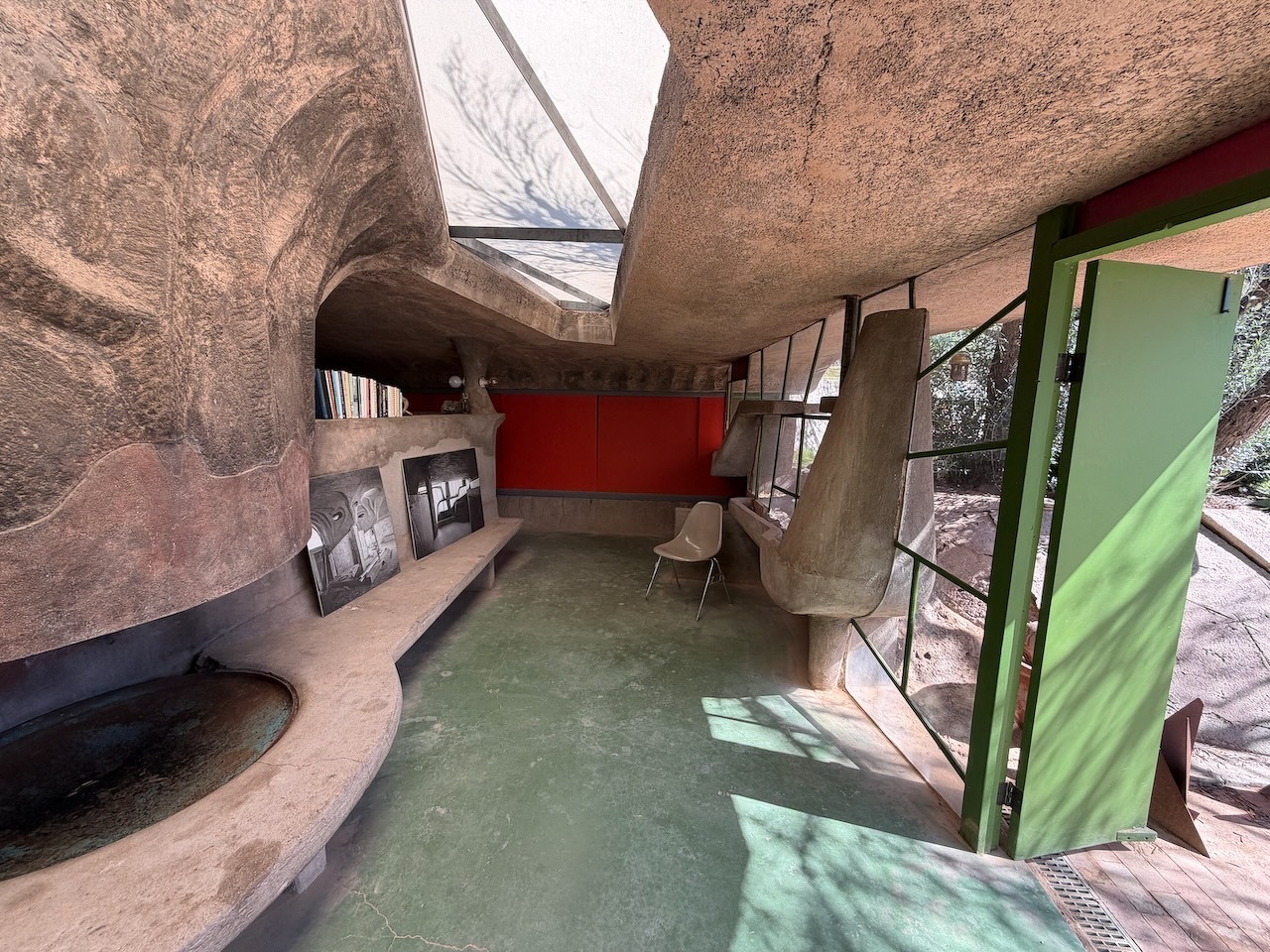 I watched artisans pour molten bronze to make some of those famous Cosanti bells today, while we toured Paulo Solari’s…uhhh…experimental “sustainable urban design” studio/foundry (a companion to his “arcology” installation, Arcosanti) for our Phoenix Culture Pass quest.