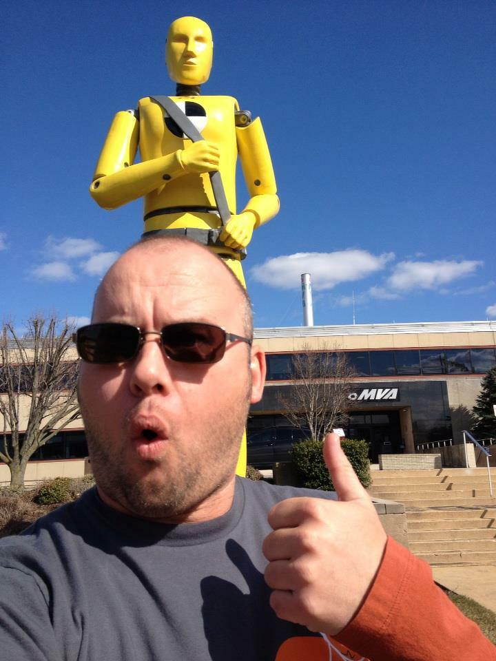 Giant crash dummy wishing me a safe drive as I begin #BattlefieldsandBeginnings road trip. #fb