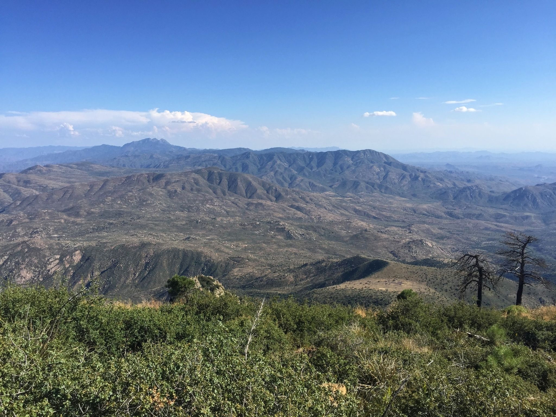 Mt Ord, maybe 45 minutes northeast of Phoenix just off the Beeline Highway, provides the quickest destination for pine trees and great 360° views. This is looking south towards Four Peaks.