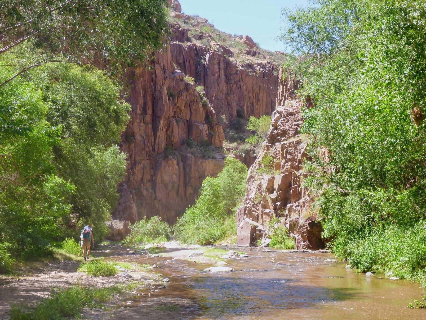 When people want to hike in the desert even when it’s getting hot, I always recommend an overnight in Aravaipa Canyon Wilderness. It’s not everywhere that you can walk through a perennial stream at the same time you pass saguaros in the summer heat.
