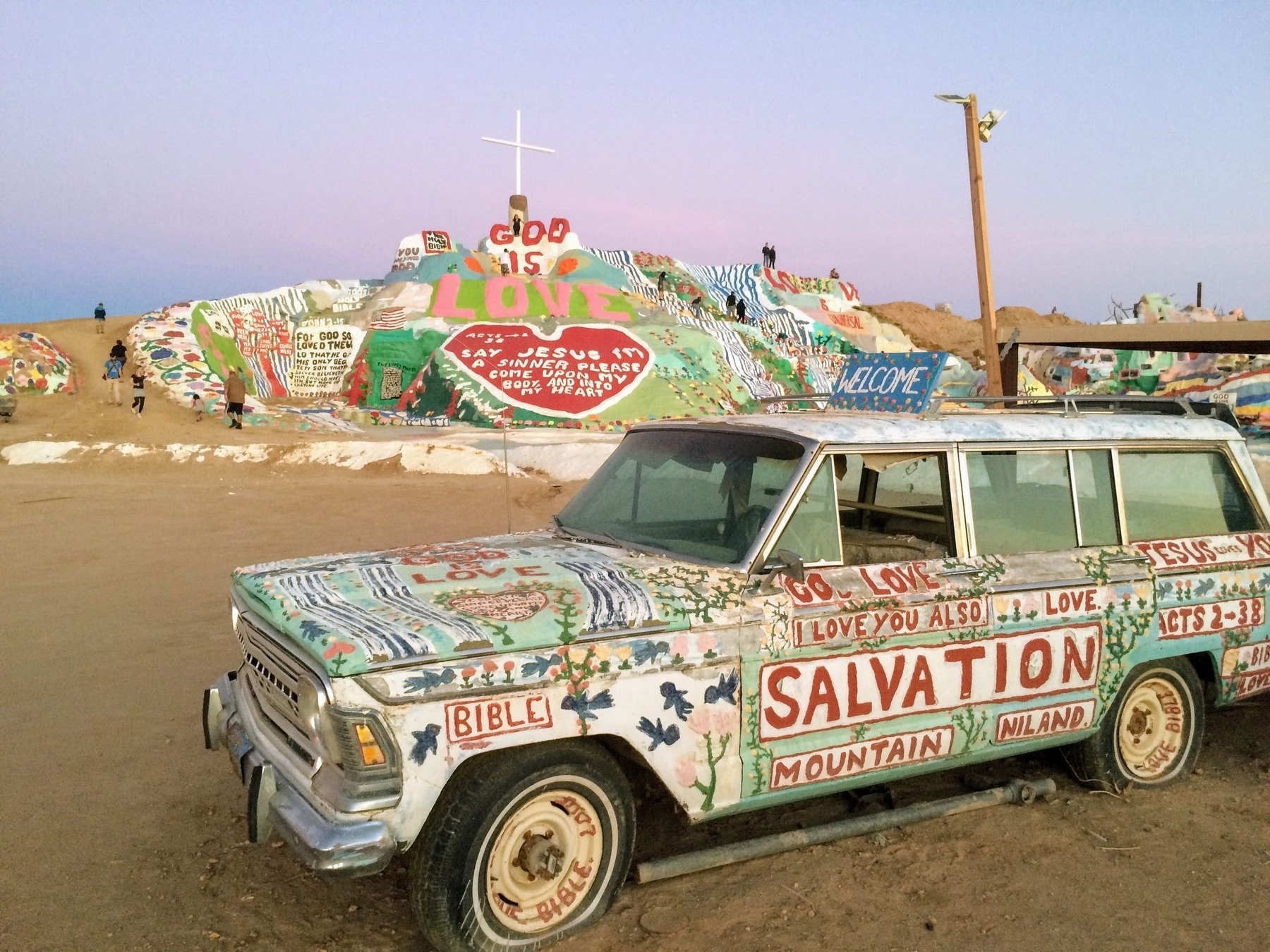 Salvation Mountain was made famous by its inclusion in the movie “Into the Wild.” If you’re near the Salton Sea, take a few minutes detour to check it out, then drive a bit further to the infamous Slab City.