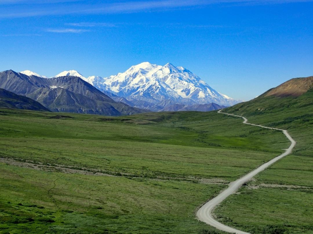 The following day when we boarded the long 12-hour bus ride into Denali National Park, we were hopeful but resigned to the fact that we probably wouldn’t get a great shot of the mountain. So when we crested a hill and finally got this amazingly clear view of the highest peak on the continent, we were thrilled. And so was the bus driver, who later explained that this was the clearest day she’d ever seen of the mountain all the years she’d been driving.