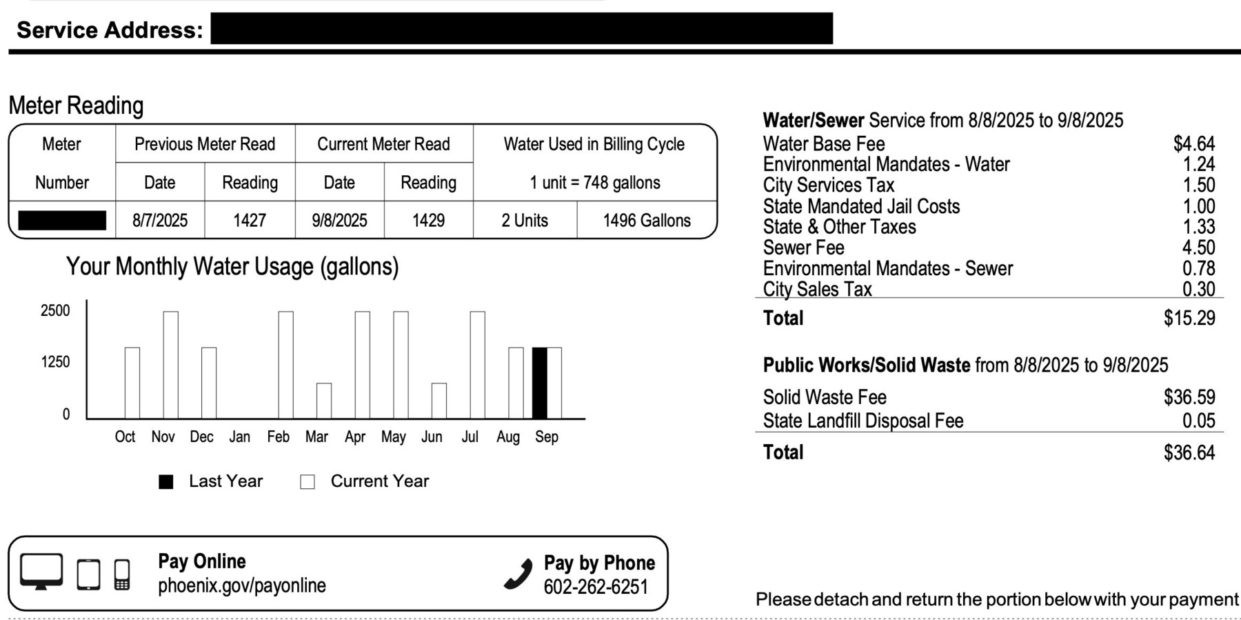Our monthly water bill during the hot Phoenix summer