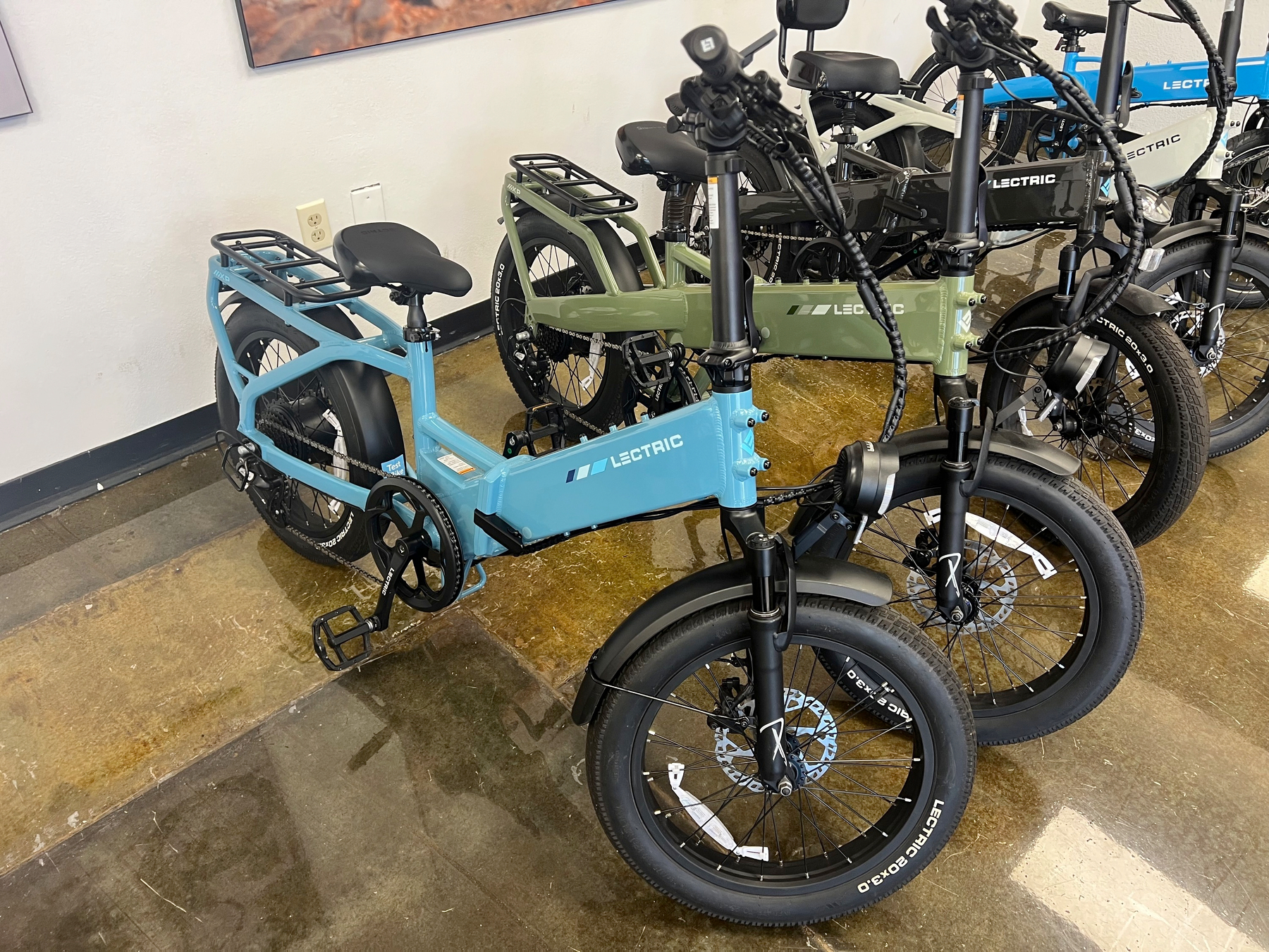 After an expedited research phase and a quick test ride today, we snagged matching Lectric XP4 750 folding e-bikes, in blue (see pic) and black. These seem like the best value for our pavement/hard packed dirt needsβand a good deal right now.