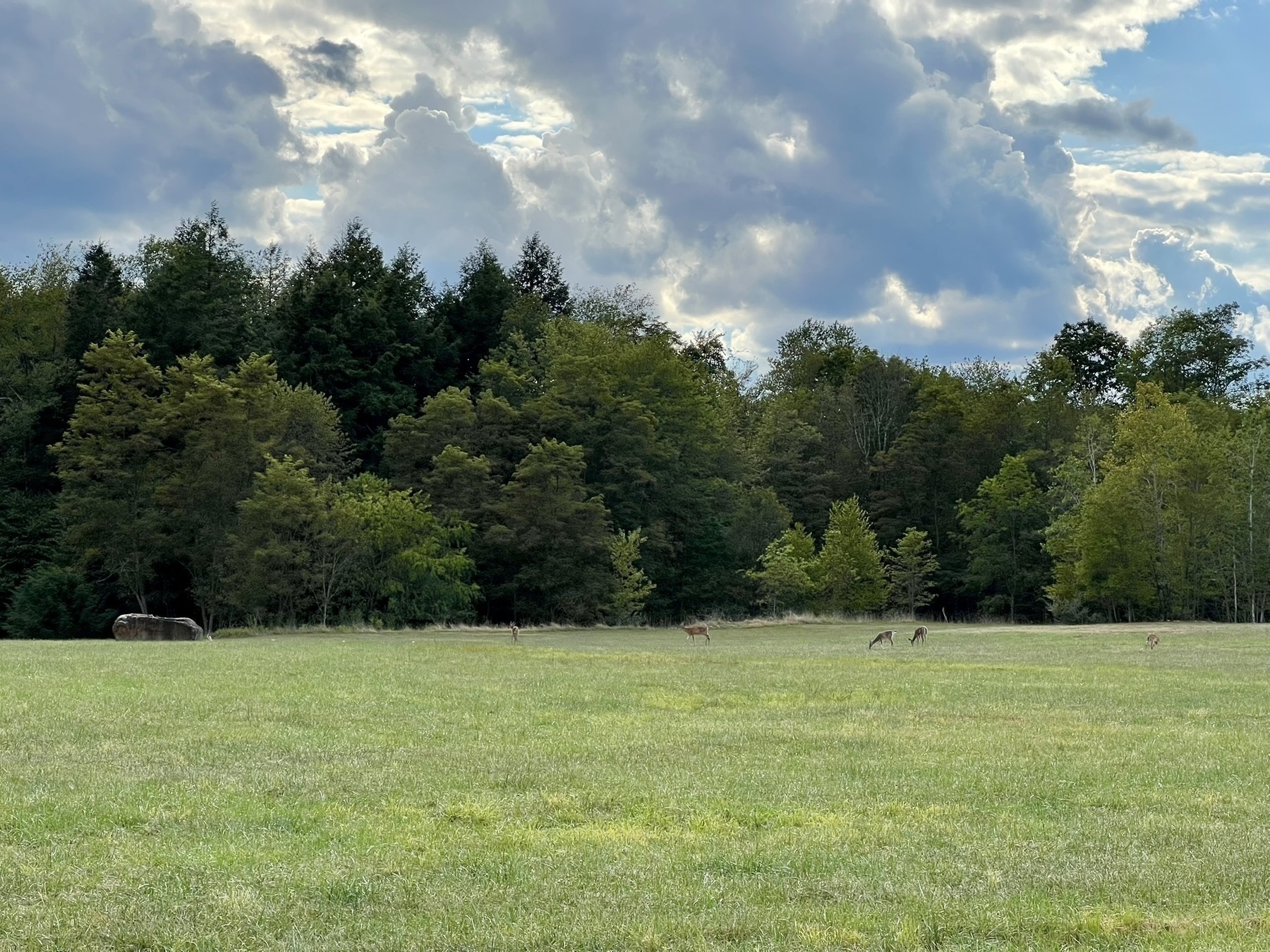 Deer wander near the crash site, denoted by the large boulder